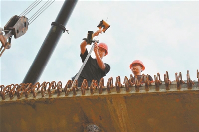 昨日,由中國鐵建大橋工程局集團有限公司承建的番海大橋施工現(xiàn)場車聲隆隆,一片繁忙景象,隨著吊車掛鉤的摘取,項目首片箱梁成功架設(shè),標志著大橋全面進入橋面系及附屬施工階段,向?qū)崿F(xiàn)大橋合龍以及年底主線通車的目標邁出了堅實的一步。