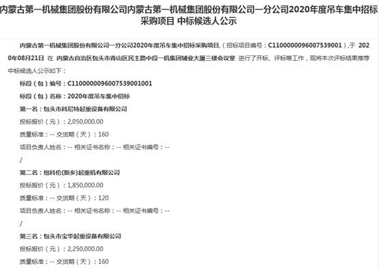 招標(biāo)公司受業(yè)主委托,于2020-09-04在網(wǎng)上發(fā)布:內(nèi)蒙古第一機械集團股份有限公司一分公司2020年度吊車集中招標(biāo)采購項目結(jié)果公示。各有關(guān)單位請與公告中招標(biāo)負(fù)責(zé)人接洽聯(lián)系,及時開展投標(biāo)及相關(guān)工作,以免錯失商業(yè)機會。 |