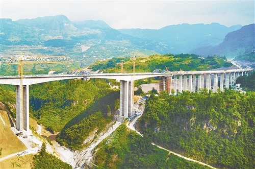 近日,由中鐵十七局集團(tuán)承建的昭瀘高速公路中場河特大橋右幅中跨順利合龍。中場河特大橋?yàn)檎褳o高速公路項(xiàng)目6個(gè)控制性工程之一,橋梁單幅全長897米,是昭瀘高速公路全線跨度最大的連續(xù)剛構(gòu)橋。橋梁跨越百米深溝,橋面距離溝底最深處150米,最高橋墩63米,最大懸澆節(jié)段混凝土重220噸,施工安全及技術(shù)難度大。