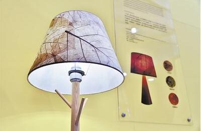 9月17日,第三屆河北國際工業(yè)設(shè)計(jì)周河北工業(yè)設(shè)計(jì)成果展區(qū)內(nèi)展示的一款用樹葉制作的燈具。河北日?qǐng)?bào)記者趙海江攝