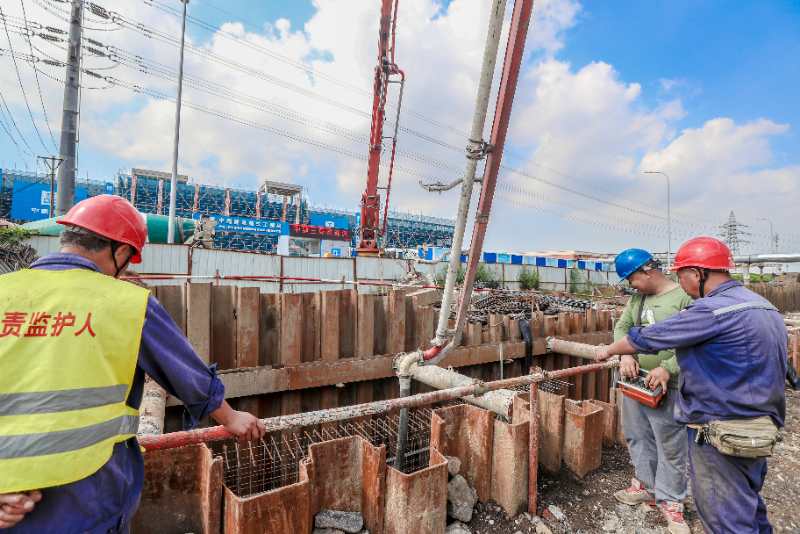 圖為國網(wǎng)大連供電公司施工人員正在對電纜隧道進(jìn)行澆筑。