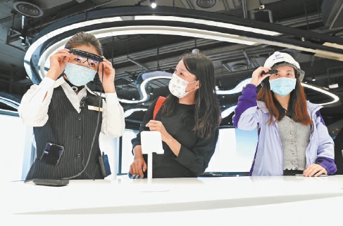 昨天,參觀者在麗澤金融商務區(qū)麗澤SOHO31層5G實驗室體驗5G新技術帶來的變化。工作人員為參觀者現(xiàn)場演示5G技術在醫(yī)療、自動駕駛、人工智能等領域的各種應用(劉平/攝)