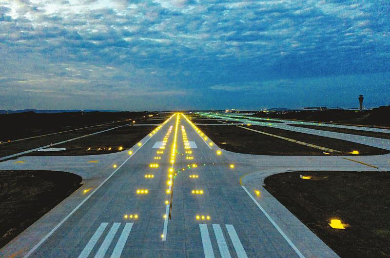 成都天府國(guó)際機(jī)場(chǎng)西一跑道完工并亮燈。記者徐沛東攝