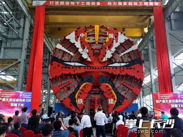 長沙晚報掌上長沙9月27日訊(全媒體記者 伍玲 通訊員 胡清)沒有最大,只有更大。自主研發(fā)國產(chǎn)盾構(gòu)機以來,鐵建重工一次次挑戰(zhàn)極限,突破自我,從4米、8米、到12米,再到16米。今日,一臺最大開挖直徑達16.07米的超大直徑盾構(gòu)機在中國鐵建重工集團長沙第一產(chǎn)業(yè)園下線。這臺“巨無霸”盾構(gòu)機整機長150米,總重量4300噸,是我國迄今研制的最大直徑盾構(gòu)機。