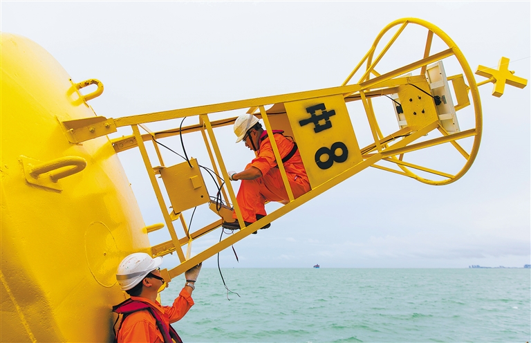 在過去18個月內(nèi),??诤綐?biāo)處組織對瓊州海峽156座燈浮標(biāo)上的遙控遙測設(shè)備統(tǒng)一更新升級安裝了科技含量高的北斗系統(tǒng)。