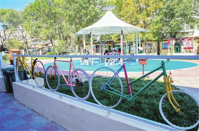 我市河?xùn)|區(qū)充分結(jié)合小區(qū)特色和居民需求,利用社區(qū)空地著力打造一批“口袋公園”。日前,位于河?xùn)|區(qū)向陽樓街道晨光樓社區(qū)26號(hào)樓旁的聚心園建成并開放,廢舊自行車做成的彩色圍墻、藍(lán)色的塑膠跑道、嶄新的健身驛站,亮麗的景觀讓人眼前一亮,讓居民可“推窗見綠、出門進(jìn)園”,成為家門口休閑、運(yùn)動(dòng)、娛樂的好去處。(來源: 天津日?qǐng)?bào) 吳迪)