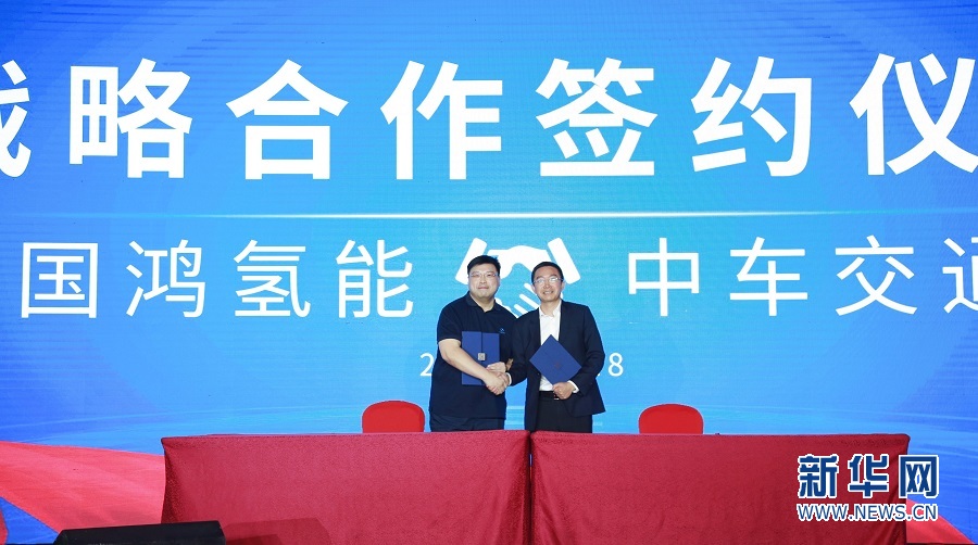 發(fā)布會(huì)上,國(guó)鴻氫能與中車交通進(jìn)行了戰(zhàn)略合作簽約。新華網(wǎng)發(fā)