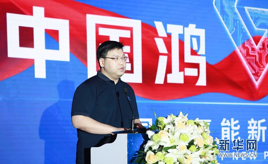 國(guó)鴻氫能總經(jīng)理陳曉敏在發(fā)布會(huì)上致辭。新華網(wǎng)發(fā)