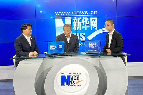 中國石油和化學(xué)工業(yè)聯(lián)合會副秘書長胡遷林(左),鄭州大學(xué)化學(xué)學(xué)院教授、博士生導(dǎo)師劉壽長(中)做客新華網(wǎng)《科創(chuàng)群英匯》
