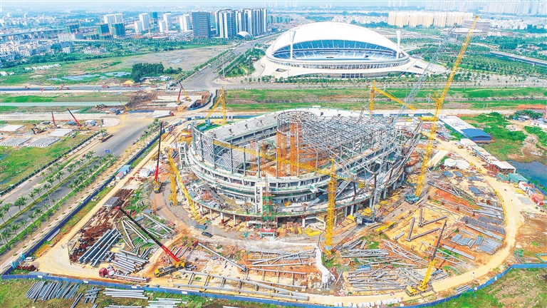 據(jù)了解,五源河文體中心二期項(xiàng)目建設(shè)內(nèi)容包括體育館、游泳館和網(wǎng)球館,其中體育館建設(shè)總投資10.9億元,可容納1.8萬觀眾座席,具備舉辦全運(yùn)會(huì)等全國(guó)性賽事以及單項(xiàng)國(guó)際比賽條件。海南日?qǐng)?bào)記者 張茂 攝