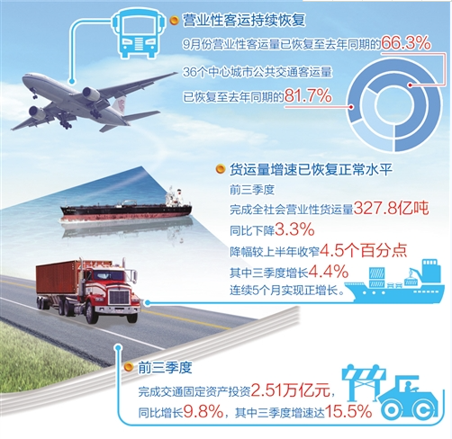 據(jù)介紹,前三季度交通運(yùn)輸業(yè)總體呈現(xiàn)“先降后升、趨于正常”的運(yùn)行態(tài)勢(shì)。目前,交通運(yùn)輸業(yè)正加快步入原有發(fā)展軌道,部分領(lǐng)域已補(bǔ)齊缺口。