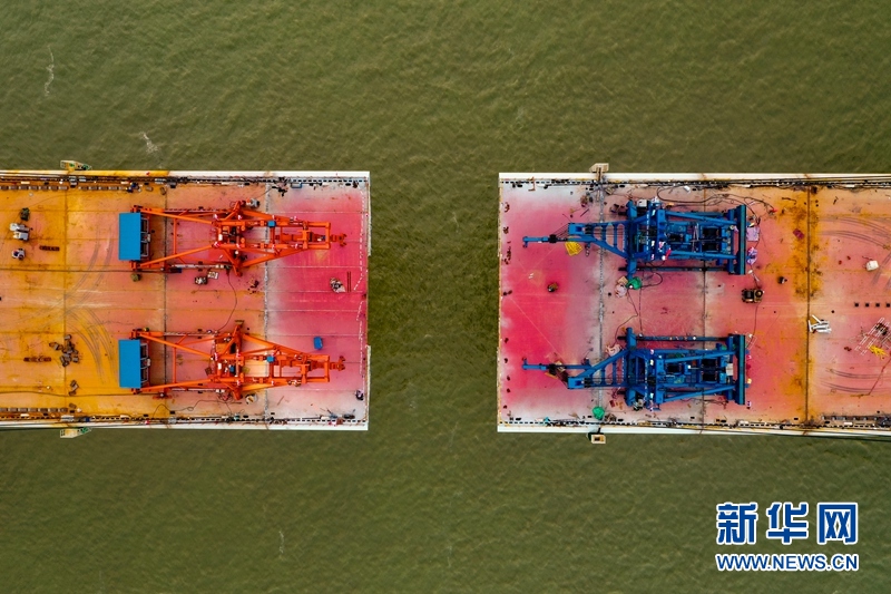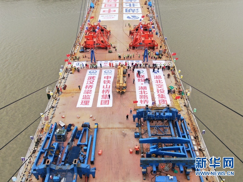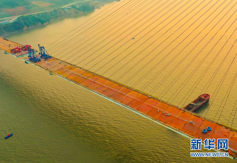 圖為武穴長(zhǎng)江公路大橋順利實(shí)現(xiàn)合龍