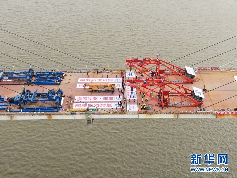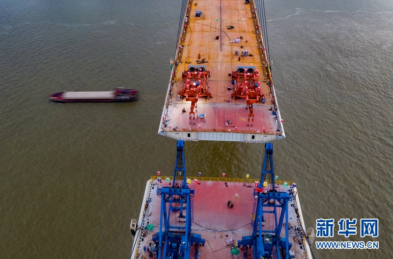 圖為武穴長(zhǎng)江公路大橋正在合龍