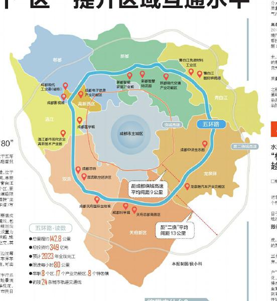 五環(huán)路是成都市規(guī)劃的3繞17射高速路網(wǎng)、3環(huán)19射8聯(lián)快速路網(wǎng)的重要組成部分,串聯(lián)的8個區(qū)、17個產(chǎn)業(yè)功能區(qū)和8個特色鎮(zhèn),將是最直接的受益者。從成都“中優(yōu)”區(qū)域出發(fā),“通過五環(huán)路,再通過產(chǎn)業(yè)路、地方道路銜接,可以說,基本上10分鐘左右車程就可以通達17個功能區(qū)。”聶斌說。