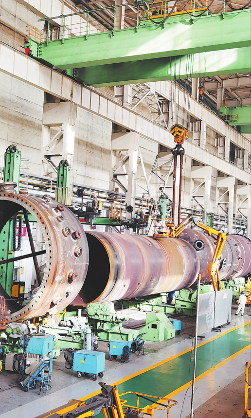 目前,2臺(tái)輻射廢鍋已運(yùn)至秦皇島重裝公司進(jìn)行總裝,其余部件正在哈電鍋爐緊鑼密鼓的生產(chǎn)制造。(來(lái)源: 黑龍江日?qǐng)?bào) 于福濤 記者 邱成 攝)