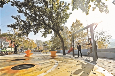 朝陽區(qū)雙井街道蘋果社區(qū)東北角占地約300平米的空地,原為街角單調(diào)低效的公共健身空間,近日完成了更新改造,新增了無障礙坡道、秋千蹦床等兒童游樂設(shè)施,設(shè)置不銹鋼裝置“打卡國(guó)貿(mào)天際線”。通過對(duì)改造前后人群活動(dòng)狀態(tài)的分析發(fā)現(xiàn),改造后小微空間內(nèi)的日人流量增加50%,中青年、兒童人群在場(chǎng)地內(nèi)停留時(shí)間增長(zhǎng),說明小微空間更新能夠給城市與社區(qū)帶來積極價(jià)值。