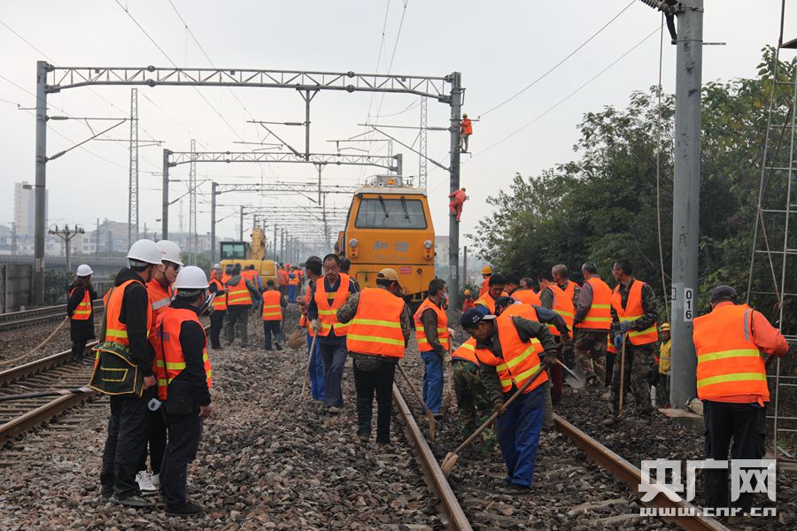 央廣網(wǎng)九江11月25日消息(記者謝元森 通訊員桂訓(xùn)煒 駱道明 王永飛)11月24日上午,經(jīng)過300多人235分鐘的緊張有序施工,由中鐵四局施工的安九高鐵改移武九鐵路上行線撥接順利完成,標(biāo)志著安九高鐵江西段施工通道全部打通。
