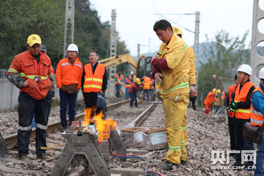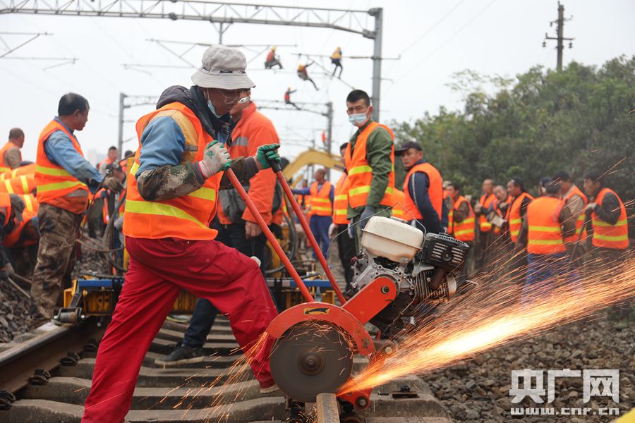 根據(jù)安排,現(xiàn)場300多名工人同時作業(yè),鋼軌切割、線路撥接、大機(jī)整道等工作穩(wěn)步推進(jìn)。其中,在施工中,臨近的京九鐵路仍有列車通行,施工方搶抓列車運行空窗期抓緊施工,經(jīng)過235分鐘有序作業(yè),在規(guī)定時間內(nèi)完成所有施工任務(wù),為后續(xù)的架梁及無砟軌道施工提供了作業(yè)面。