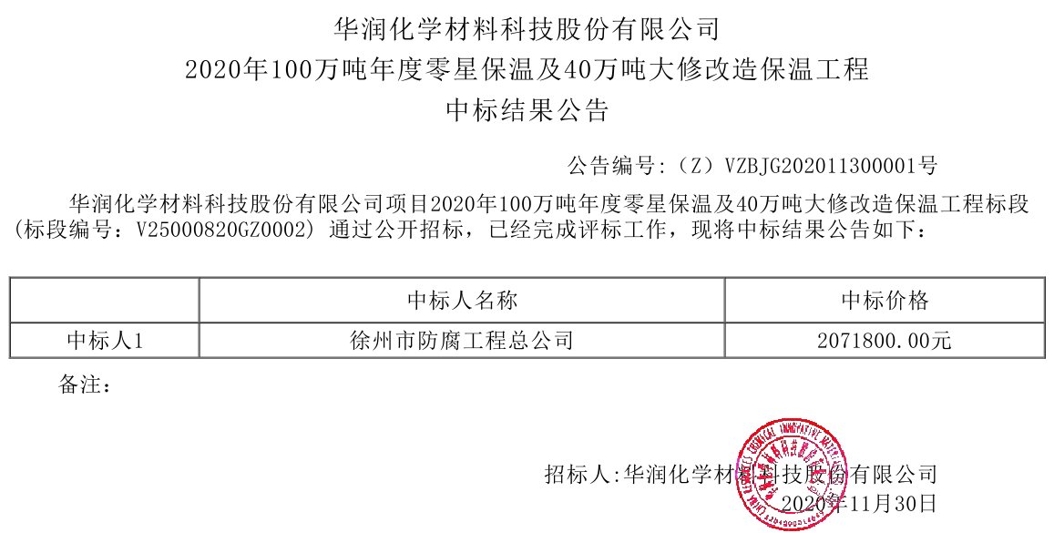移動(dòng)版:2020年100萬噸年度零星保溫及40萬噸大修改造保溫工程中標(biāo)結(jié)果公告