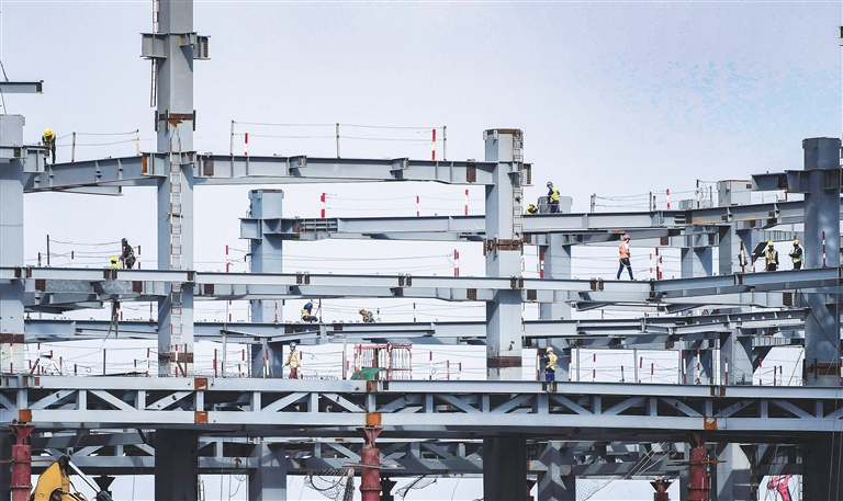 日前,在??诮瓥|新區(qū)起步區(qū)的海南國際能源交易中心大廈項目,各種作業(yè)車輛和施工人員在忙碌著對項目鋼結(jié)構(gòu)主體進行組裝。目前該項目地上鋼結(jié)構(gòu)已施工至六層。該項目堅持超常規(guī)推進,24小時施工,計劃年底主體結(jié)構(gòu)封頂。海南日報記者 袁琛 攝