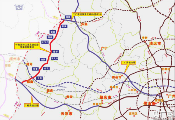 懷陽(yáng)高速起點(diǎn)位于肇慶市懷集縣崗坪鎮(zhèn),終點(diǎn)位于云浮市郁南縣平臺(tái)鎮(zhèn),全長(zhǎng)約102公里,采用雙向四車道標(biāo)準(zhǔn)為廣東省高速公路網(wǎng)“第九縱”的重要組成部分。懷陽(yáng)高速通車后,市民從肇慶懷集前往云浮郁南可節(jié)省約1小時(shí)30分的車程。同時(shí),懷陽(yáng)高速將串聯(lián)起二廣高速、廣佛肇高速和廣梧高速,貫通肇慶文化生態(tài)旅游大環(huán)線,組成“千里旅游畫(huà)廊”,帶動(dòng)沿線區(qū)域經(jīng)濟(jì)快速發(fā)展。