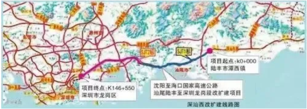 深汕西高速改擴(kuò)建項(xiàng)目起于陸豐潭西鎮(zhèn),對(duì)接深汕東高速公路,路線向西途徑汕尾市、深汕合作區(qū)、惠州市、深圳市,終于深圳市龍崗區(qū),與惠鹽高速公路對(duì)接,全長(zhǎng)146.55公里,全線按照雙向八車道高速公路標(biāo)準(zhǔn)進(jìn)行改擴(kuò)建,項(xiàng)目預(yù)計(jì)2024年建成通車。通車后,將有效改善區(qū)域交通條件,對(duì)推動(dòng)粵港澳大灣區(qū)高質(zhì)量發(fā)展將發(fā)揮重要作用。