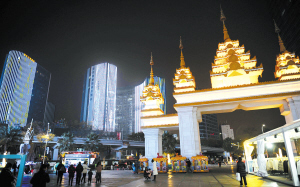 西山區(qū)南亞風(fēng)情第壹城片區(qū)建筑景觀亮化效果。記者 趙偉 攝