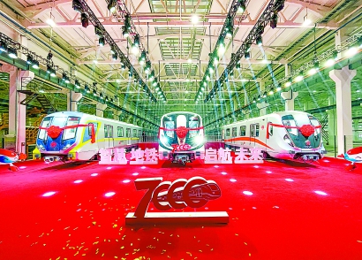 昨天下午,隨著三列最新的全自動駕駛列車亮相上海地鐵封浜基地,上海地鐵列車數(shù)量正式進入7000輛的新時代。 記者 孟雨涵 攝