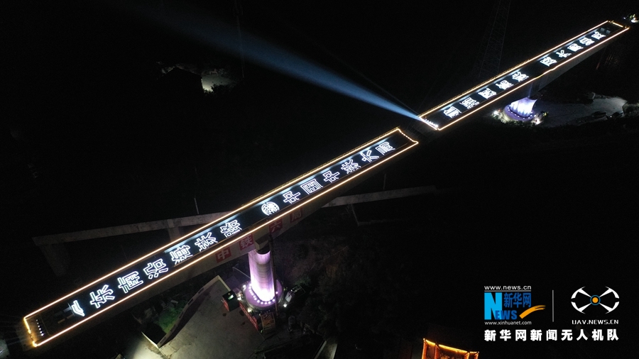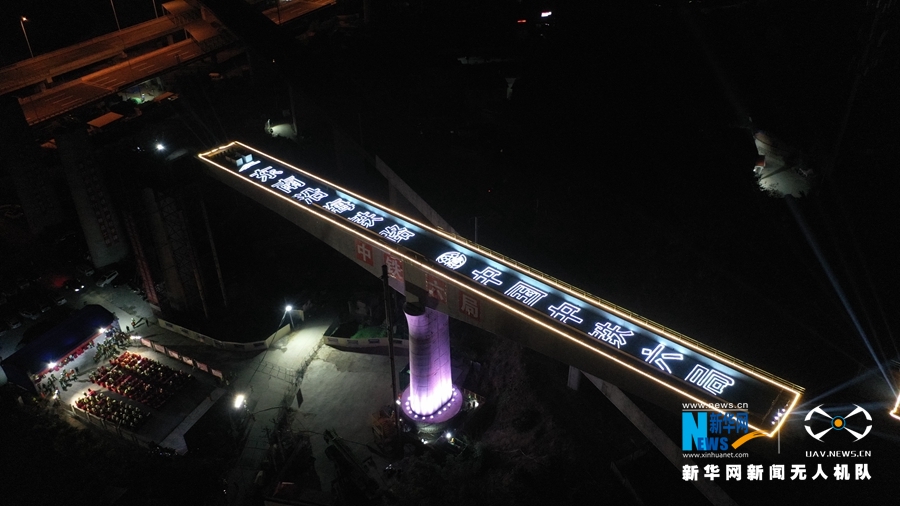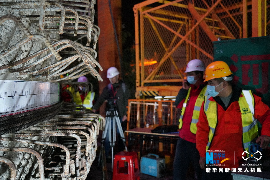 轉(zhuǎn)體前,施工人員在檢測(cè)激光刻度設(shè)備,確保轉(zhuǎn)體精度。新華網(wǎng)發(fā)(郜戰(zhàn)勝 攝)