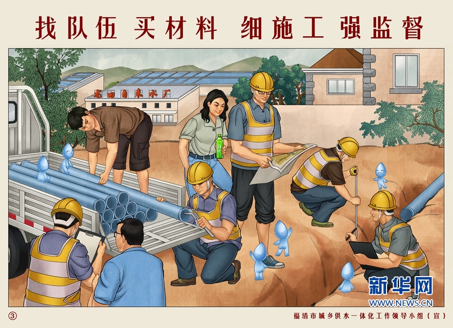 找隊伍 買材料 細施工 強監(jiān)督。新華網(wǎng)發(fā)(福清市供水辦供圖)