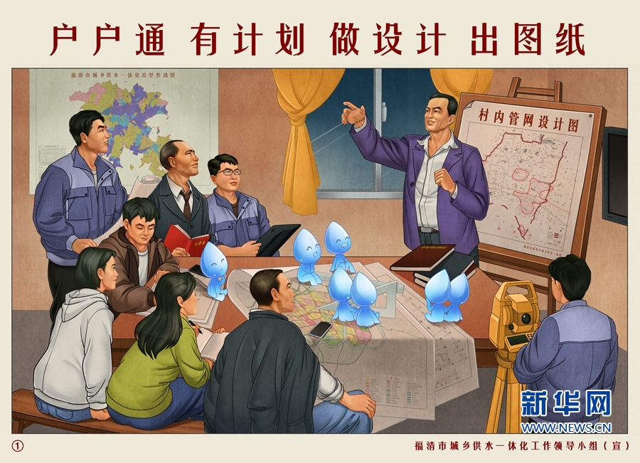 戶戶通 有計劃 做設計 出圖紙。新華網(wǎng)發(fā)(福清市供水辦供圖)
