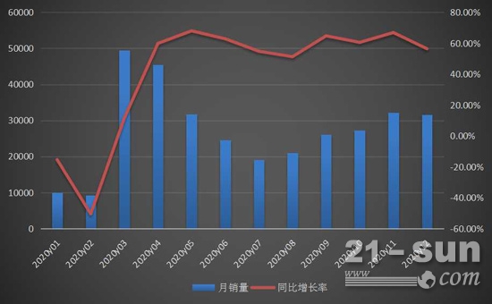 而且,更加令人驚喜的是,如此高的月銷量,并沒有透支市場(chǎng)需求,在接下來(lái)的幾個(gè)月里,挖掘機(jī)一路奔襲,持續(xù)大幅刷新歷史同月銷量紀(jì)錄!最終,在一二月開局不利的形勢(shì)下,在疫情的干擾之下,硬是連續(xù)第三年創(chuàng)出銷量紀(jì)錄!這個(gè)過(guò)程,怎一個(gè)“硬”字了得!