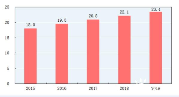 2015-2019年清潔能源消費(fèi)量占能源消費(fèi)總量的比重(國家統(tǒng)計(jì)局)