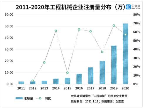 原標(biāo)題:2020年我國工程機械相關(guān)企業(yè)注冊量同比增長57%