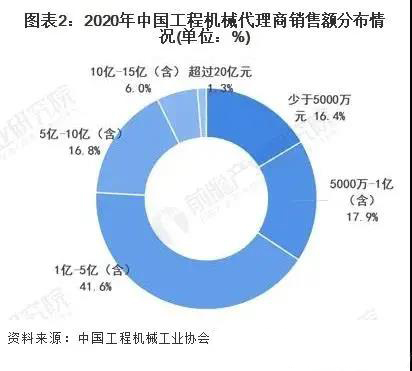 代理商群體是中國工程機(jī)械行業(yè)主流營銷渠道,為市場貢獻(xiàn)了約八成的市場銷量。根據(jù)中國工程機(jī)械工業(yè)協(xié)會調(diào)研數(shù)據(jù),2020年,銷售額超過10億元的大型代理商占到代理商群體中的7.3%,銷售額在1億元至10億元之間的中大型代理商占到代理商群體中的58.4%,低于1億元銷售的中小代理商占到代理商群體中的34.3%。