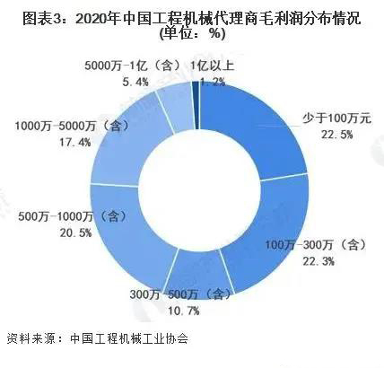 目前,國內(nèi)的工程機(jī)械代理商群體是工程機(jī)械營銷和服務(wù)渠道的主導(dǎo)力量,隨著工程機(jī)械銷量激增,行業(yè)代理商價格戰(zhàn)日趨惡劣,代理商的生存空間進(jìn)一步被擠壓,根據(jù)中國工程機(jī)械工業(yè)協(xié)會調(diào)研數(shù)據(jù)顯示,2020年工程機(jī)械代理商群體的平均毛利率是8.7%,平均凈利率僅為0.7%,行業(yè)代理商生存狀態(tài)堪憂。