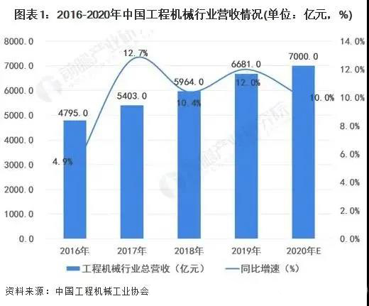 據(jù)中國工程機(jī)械工業(yè)協(xié)會資料,工程機(jī)械行業(yè)經(jīng)歷2011年至2015年的市場深度調(diào)整后,自2016年以來,受益于國家加大基礎(chǔ)設(shè)施建設(shè)投資力度,工程機(jī)械行業(yè)連續(xù)四年呈現(xiàn)增長態(tài)勢,2017年全行業(yè)營業(yè)收入重新跨上了5000億元平臺,2019年更是達(dá)到6681億元,同比增長12%,創(chuàng)歷史新高;