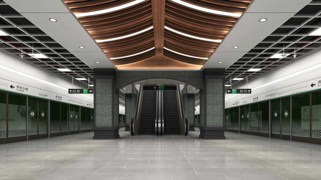 其中泰昌路站、六緯路站、徐州道站、金街站四個站為特色文化站,在標(biāo)準(zhǔn)站的基礎(chǔ)上,結(jié)合周邊環(huán)境及文化,強化個性表達(dá),采用標(biāo)準(zhǔn)化、藝術(shù)化、科技化、人性化、綠色等多種手段,表達(dá)整體空間設(shè)計,是全線的文化屬性亮點。