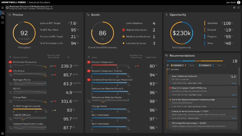 在生產(chǎn)過程和設(shè)備關(guān)聯(lián)的基礎(chǔ)上,霍尼韋爾智能工廠解決方案能夠部署在云端或當?shù)財?shù)據(jù)中心,為客戶提供基于設(shè)備與過程的智能分析,該解決方案把煉油流程的實時機理模型,運用到了智能工廠里面,幫助客戶更加直觀、高效地了解工廠的操作優(yōu)化路徑。
