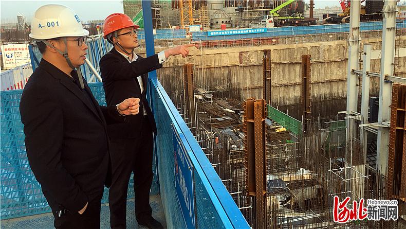 正在施工中的雄安新區(qū)垃圾綜合處理設施一期工程,采用國內(nèi)首個地下和半地下設計,使垃圾處理后可實現(xiàn)煙氣超低排放。圖為項目部管理人員在施工現(xiàn)場進行調度。 河北日報記者張偉亞攝