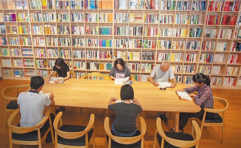 在瓊海市新時代文明實踐中心萬泉河分中心,市民享受閱讀樂趣。阮琛 攝