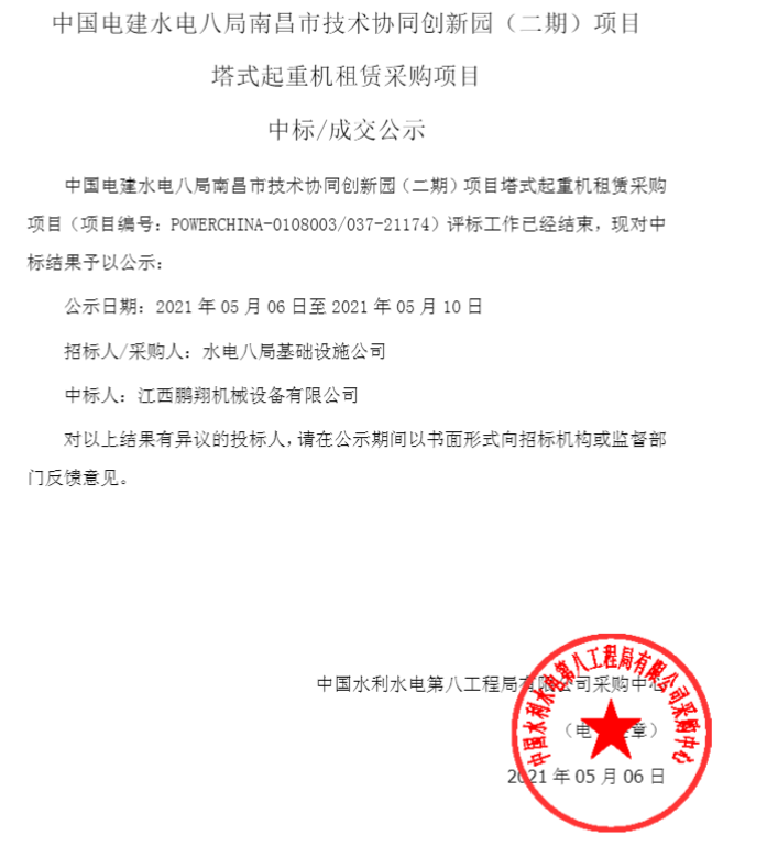 移動(dòng)版:江西:塔式起重機(jī)租賃采購(gòu)項(xiàng)目成交公示