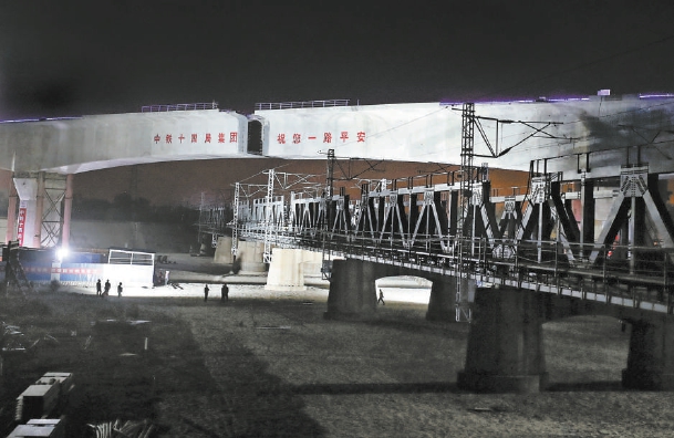 9分鐘轉(zhuǎn)體33度 豐臺(tái)站改建工程跨京廣鐵路大橋合龍