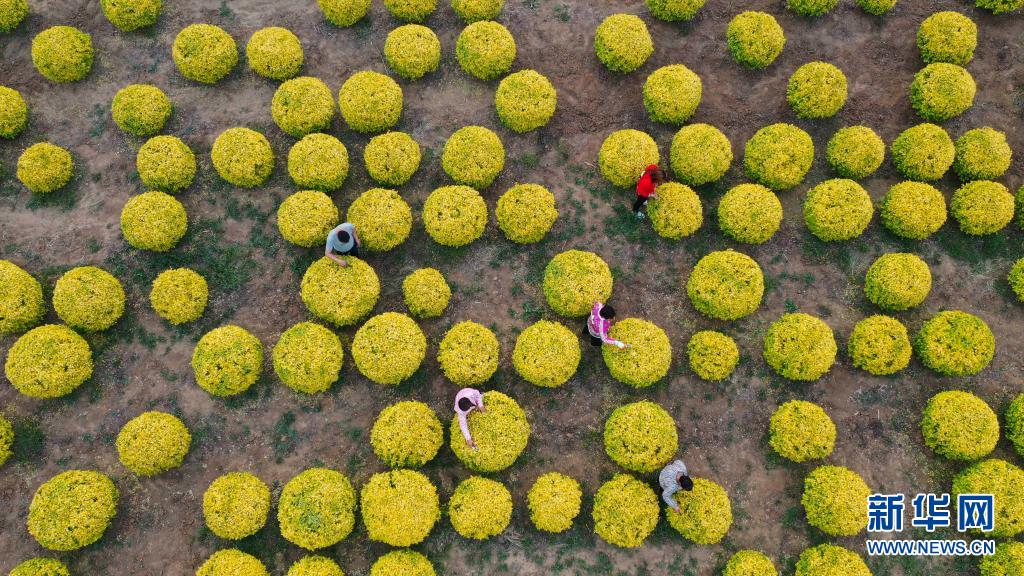 5月13日,河北省遵化市新店子鎮(zhèn)西葦?shù)甏宓霓r(nóng)民在修剪景觀樹(shù)(無(wú)人機(jī)拍攝)。