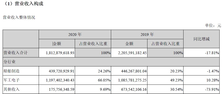 根據(jù)2020年年報,亞光科技的船舶制造收入僅占總營業(yè)收入的20%。