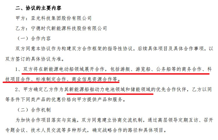 5月12日晚間,亞光科技公告,公司與寧德時代(300750)簽署合作協(xié)議,雙方將在新能源電動船領(lǐng)域展開合作,包括游艇、游覽船、公務(wù)船等的商務(wù)合作、科技項目合作、標(biāo)準(zhǔn)制定合作、商業(yè)信息資源合作等。