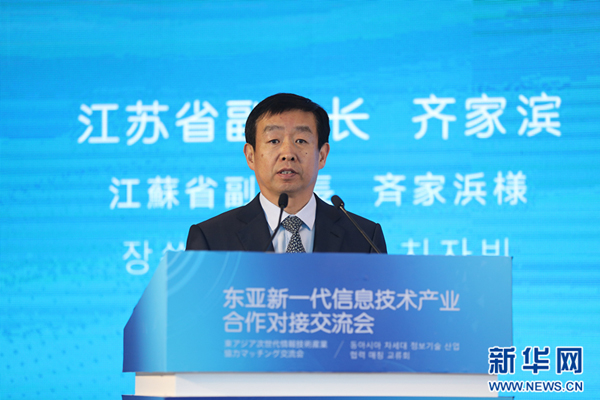 江蘇省副省長齊家濱在致辭中表示,江蘇是經(jīng)濟大省、開放大省,也是制造大省、網(wǎng)絡(luò)大省。2020年全省信息技術(shù)產(chǎn)業(yè)實現(xiàn)主營業(yè)務(wù)收入3.9萬億元,占全國比重達17.5%,位居全國第二;數(shù)字經(jīng)濟規(guī)模超過4萬億元;兩化融合發(fā)展水平指數(shù)達到63.2,連續(xù)六年保持全國第一。江蘇與東亞地區(qū)地緣相近、人文相親,產(chǎn)業(yè)互補性強,有良好的經(jīng)貿(mào)合作基礎(chǔ)。要搶抓新一輪科技革命和產(chǎn)業(yè)變革機遇,加快科技強省、制造強省建設(shè),推動新一代信息技術(shù)與制造業(yè)深度融合,大力發(fā)展數(shù)字經(jīng)濟。