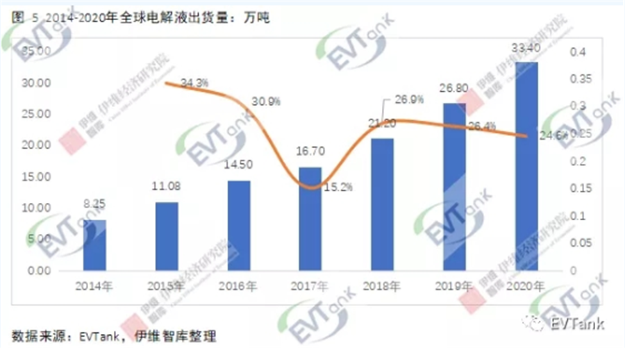 移動版:2020年全球鋰離子電池電解液出貨量達到33.4萬噸 行業(yè)再次進入價量齊升階段