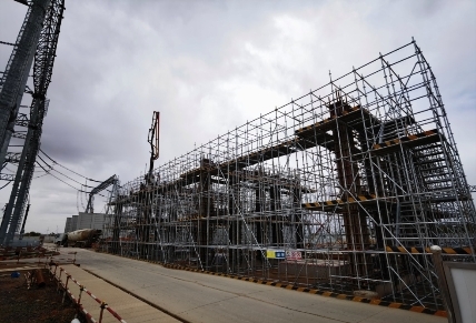 在主變防火墻澆筑施工過程中,項(xiàng)目管理部嚴(yán)格執(zhí)行冀北公司有關(guān)規(guī)定,工程所用腳手架為當(dāng)前建筑行業(yè)中推廣使用的“盤扣式”腳手架。其在工程中的應(yīng)用皆在為防火墻整體施工安全提供可靠保證,為實(shí)現(xiàn)防火墻整體工期計(jì)劃奠定基礎(chǔ)。 (盤扣式腳手架搭設(shè)5月17日完成。)