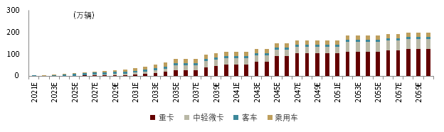 圖表: 2021E-2060E 氫燃料電池車銷量拆分